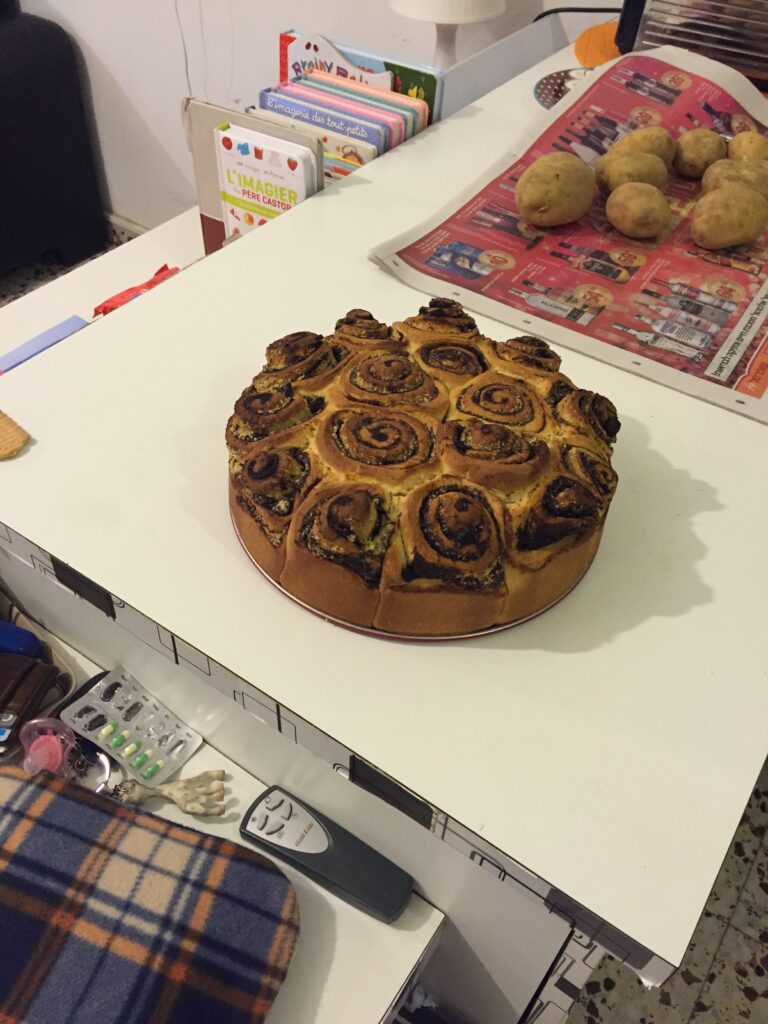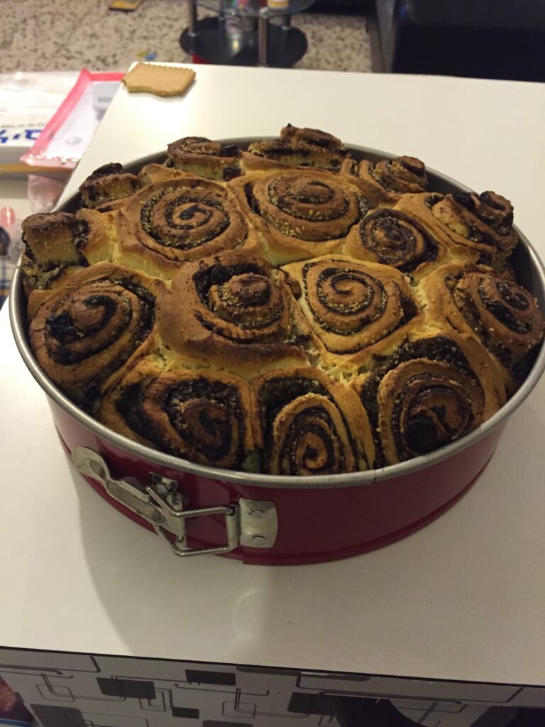 כעבור שעה חוזרים לרדד את הבצק. ראשית מומלץ לחלק את הבצק ל – 4 חלקים ולרדד כל חלק בנפרד לעלה גדול, לא עבה מידי ולא דק מידי, למרוח על העל עם מרית את השוקולד (אם חילקתם את הבצק ל4 אז לחלק את ממרח השוקולד בהתאם).